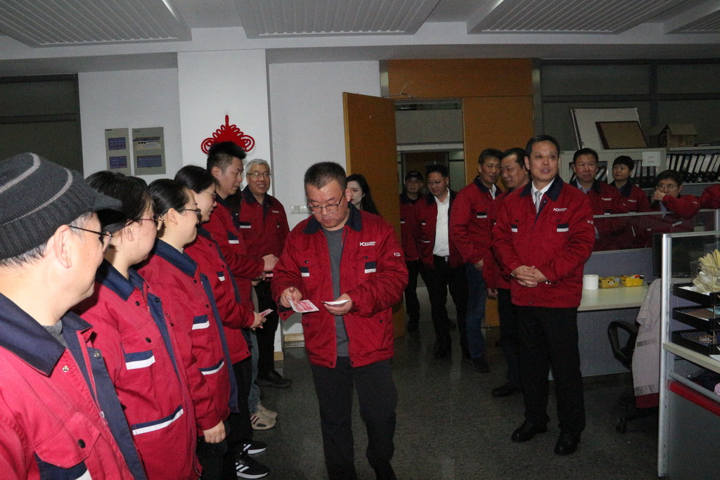 早上7:30,集團副總裁王眉林、關金學、顧祖全帶領各經理班子及部門管理者在公司門口迎接員工上班,上班后集體前往各車間、部門向員工們拜年,并發放開門紅包和送上新春祝福,同時勉勵全體員工在新的一年里要統一思想、凝聚共識,繼續保持良好態勢,懷揣敢闖敢干的勇氣和勇于創新的擔當,扎實工作,以更加飽滿的熱情與積極的態度迎接嶄新的一年。