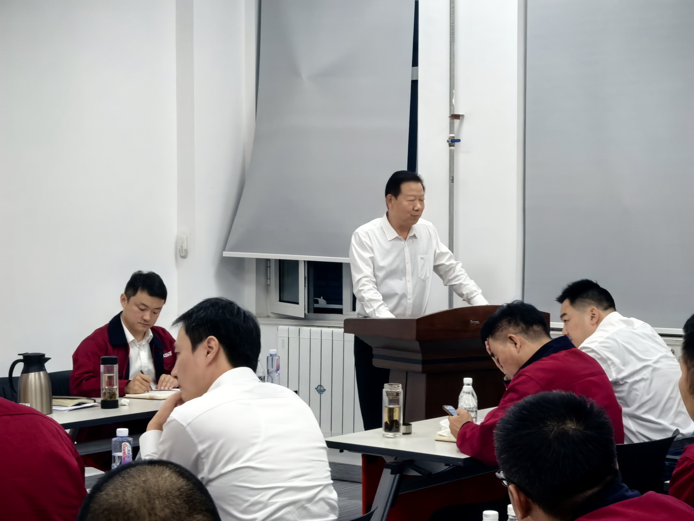 10月26日下午,技服公司/內(nèi)蒙科試在伊旗基地召開了四季度工作會議。集團(tuán)公司副總裁兼技服公司總經(jīng)理關(guān)金學(xué)、集團(tuán)公司副總裁顧祖全、集團(tuán)公司董事長助理兼財務(wù)總監(jiān)姜昱、集團(tuán)公司人力資源部副主任孫思丹、內(nèi)蒙科試公司領(lǐng)導(dǎo)、寧夏分公司領(lǐng)導(dǎo)、各部門領(lǐng)導(dǎo)、各服務(wù)隊隊長等52人參加了會議。會議主題為“工作目標(biāo)完成情況;規(guī)劃和奮斗四季度,確保完成全年工作目標(biāo)”。