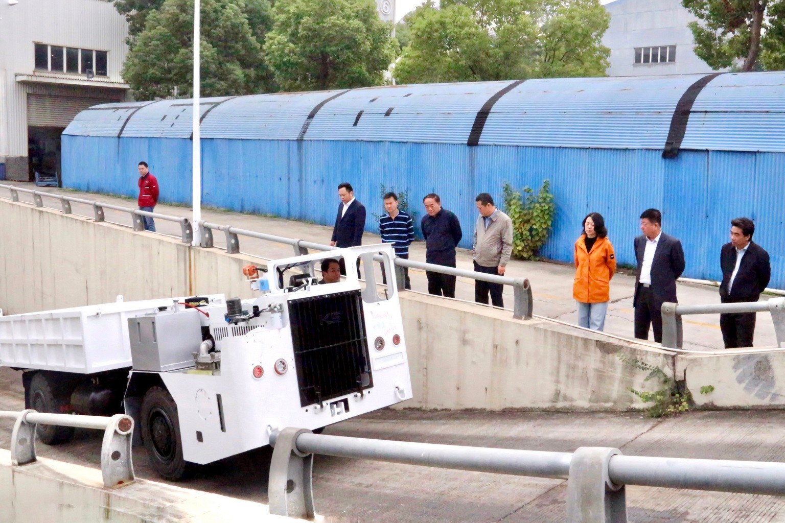 走訪期間,王戰強副理事長帶隊深入公司車間一線,詳細了解公司主要產品的功能特點和生產經營狀況,并在公司試驗場觀摩了防爆柴油機無軌膠輪車和防爆鋰離子蓄電池無軌膠輪車運行表演,對科試集團的技術研發實力及產品創新能力給予了高度評價,并對公司在煤礦輔助運輸市場的進一步發展表達了殷切期望。